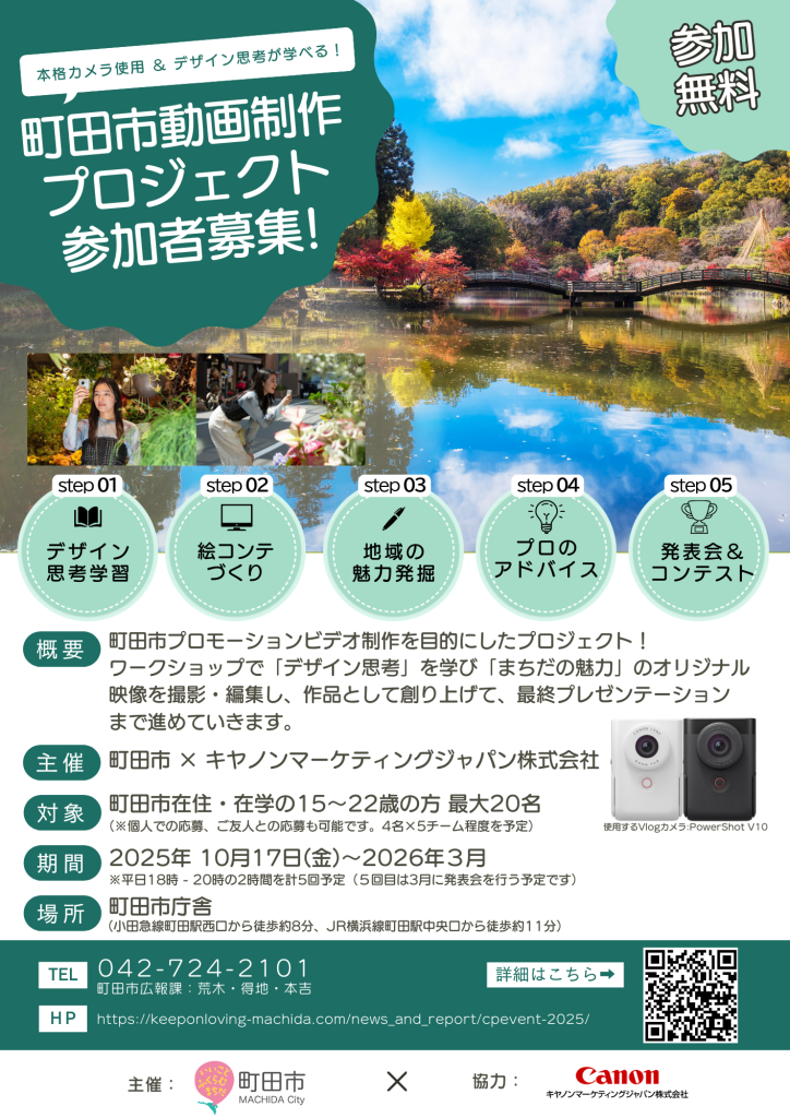 15~22歳の方向けに、町田市プロモーションビデオ制作を目的にしたプロジェクトの参加者を募集中です!
